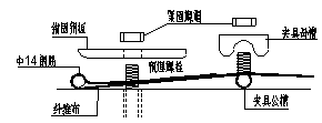 原理及操作方法:按圖1(a)抹膠后將纖維布拉直就位,蓋上錨固鋼板,安裝緊固螺帽,將鋼筋連同纖維布向外拉,同時收緊錨固鋼板,利用鋼筋與錨固鋼板一端的弧面作用,利用擠壓力將鋼筋和纖維布向外推動,初步將纖維布張緊。膠硬結后,收緊夾具,通過擠壓,使纖維布收緊,建立預應力。